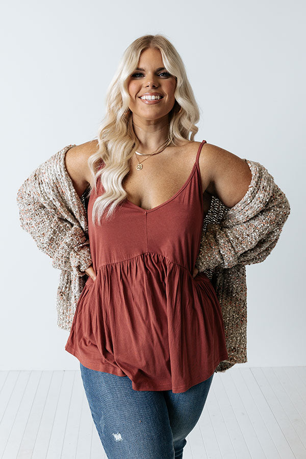 Make your fashion debut looking amazing in this darling plus size aurora red colored top featuring lightweight flowy material, a scooped v-cut neckline, adjustable spaghetti straps, and a relaxed but flirty babydoll silhouette that falls into a straight hemline! Measurements