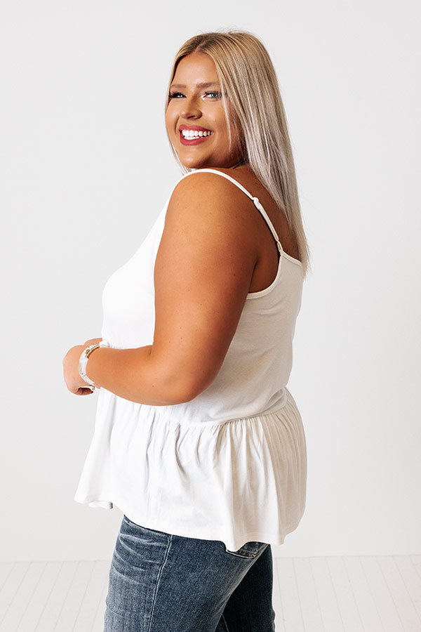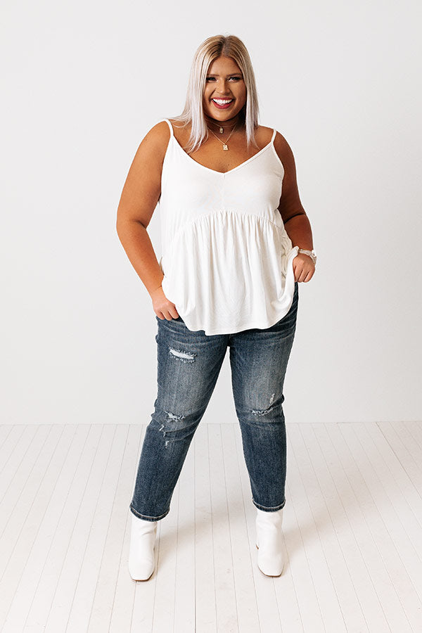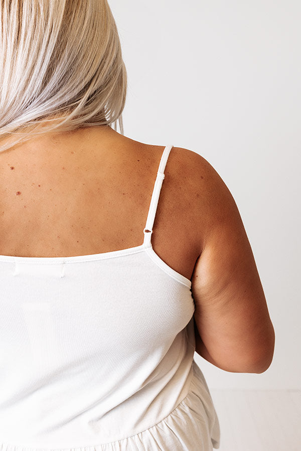 Make your fashion debut looking amazing in this darling plus size white top featuring lightweight flowy material, a scooped v-cut neckline, adjustable spaghetti straps, and a relaxed but flirty babydoll silhouette that falls into a straight hemline! Measurements