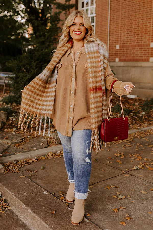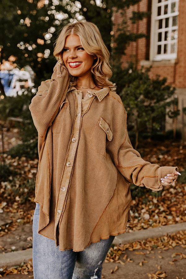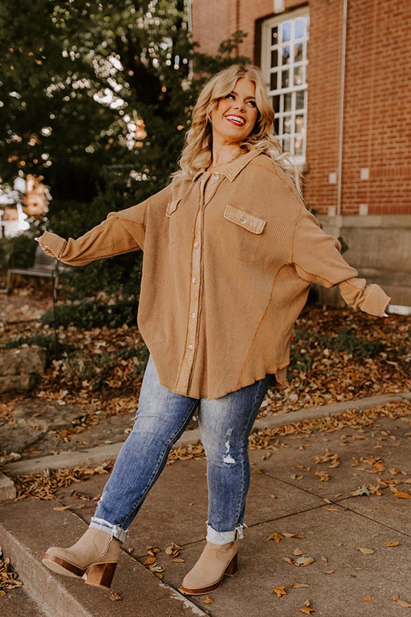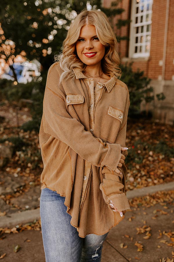 Making It Work Waffle Knit Top In Camel Curves