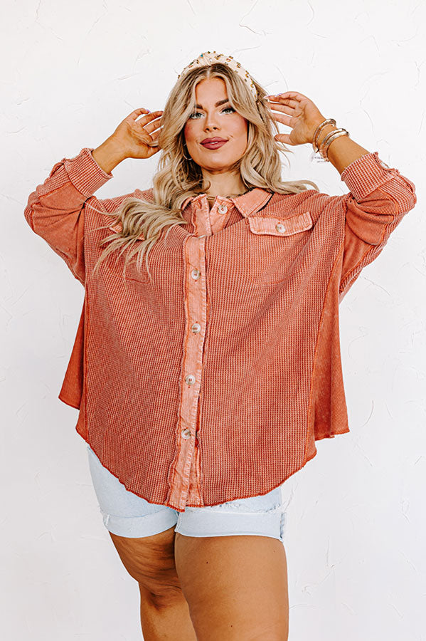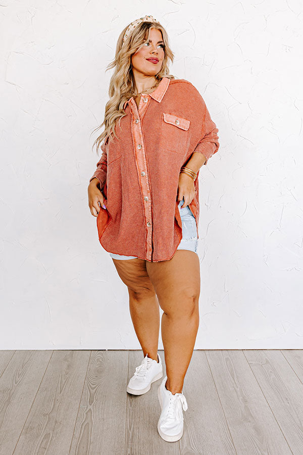Making It Work Waffle Knit Top In Pumpkin Curves
