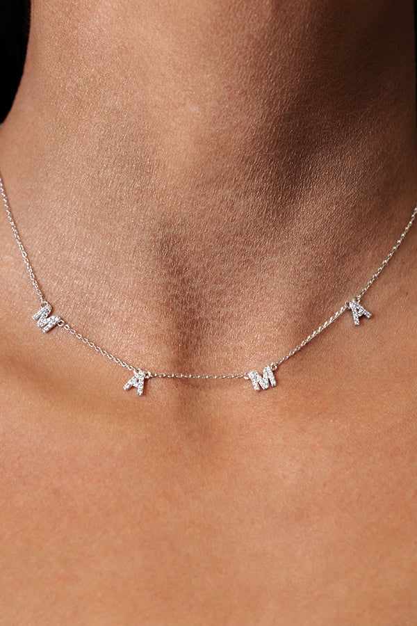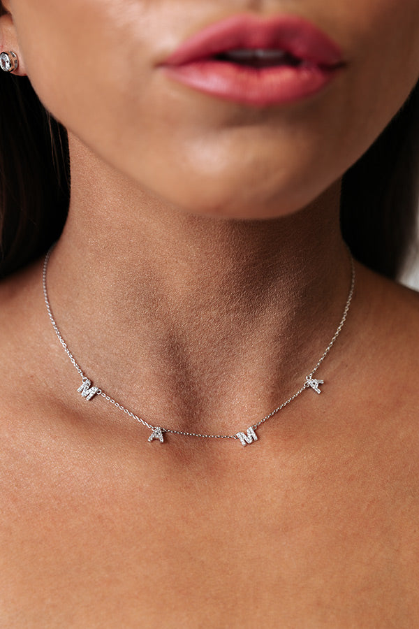 You don't need to wait for a special occasion to treaty yourself or your mom with this adorable necklace featuring a dainty silver chain with rhinestone letter charms that spell out MAMA!