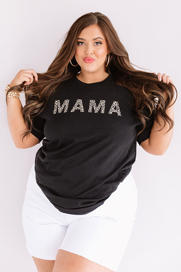 Plus Size - Show off your super mama powers with this adorable black tee featuring soft lightweight material with bold leopard print block lettering on the front, a high rounded neckline, short loose sleeves, and a relaxed silhouette that falls into a straight hemline that can be knotted! You can style this casual cutie a variety of ways, like with some white jean shorts and trendy neutral sneakers, but you can also wear it layered under a cropped jean jacket with some leopard joggers, "The Allen Wedge in Black," sunnies, and "The Essential Faux Leather Backpack in Black!" Measurements