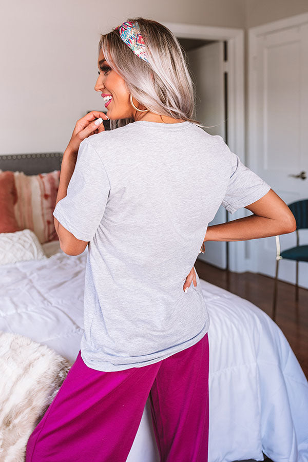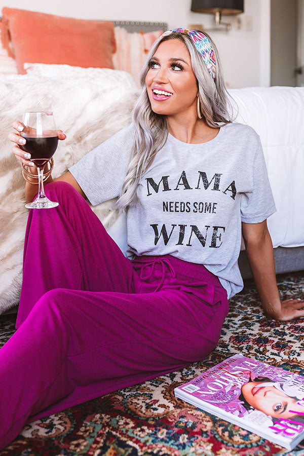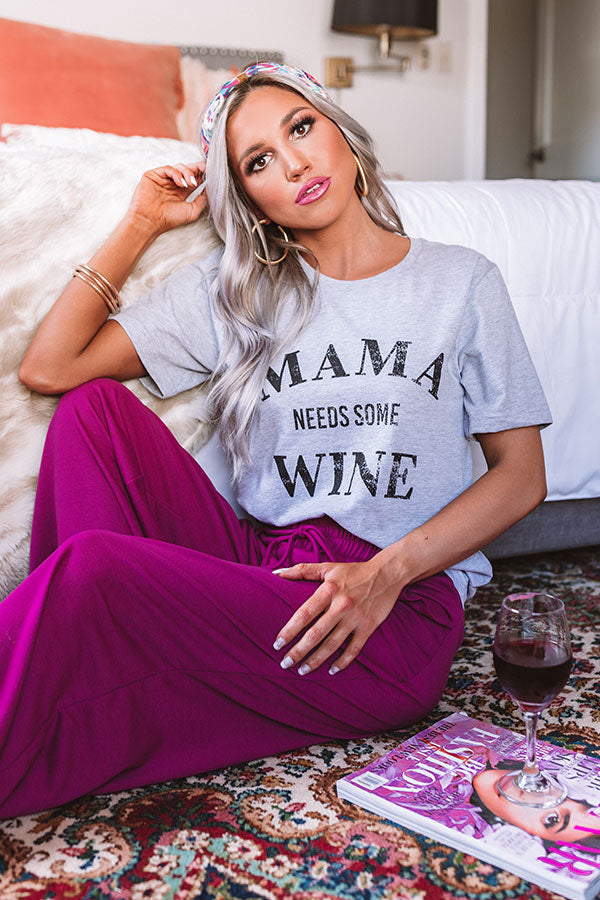 You are sure to be mom of the year in our adorable light grey "Mama Needs Some Wine Shift Tee" featuring soft lightweight material with black block lettering on the front, a high rounded neckline, short loose sleeves, and a relaxed silhouette that falls into a straight hemline! You can style this cutie a variety of ways, like dressed down with an accent headband and comfy pants, or you can dress it up by wearing it with layered under a cropped jean jacket with some frayed black shorts, "The Karlie Perforated Bootie in Grey," and "The Essential Faux Leather Backpack in Black!"