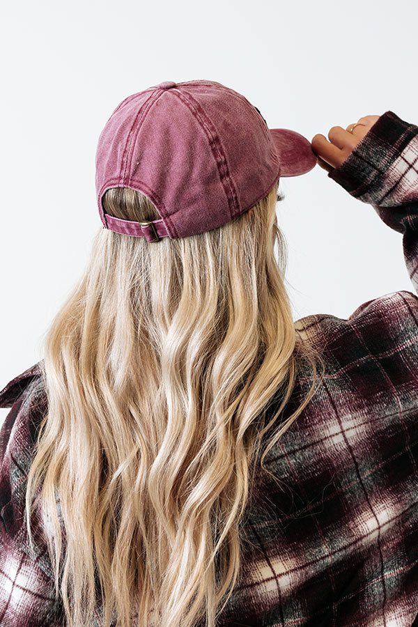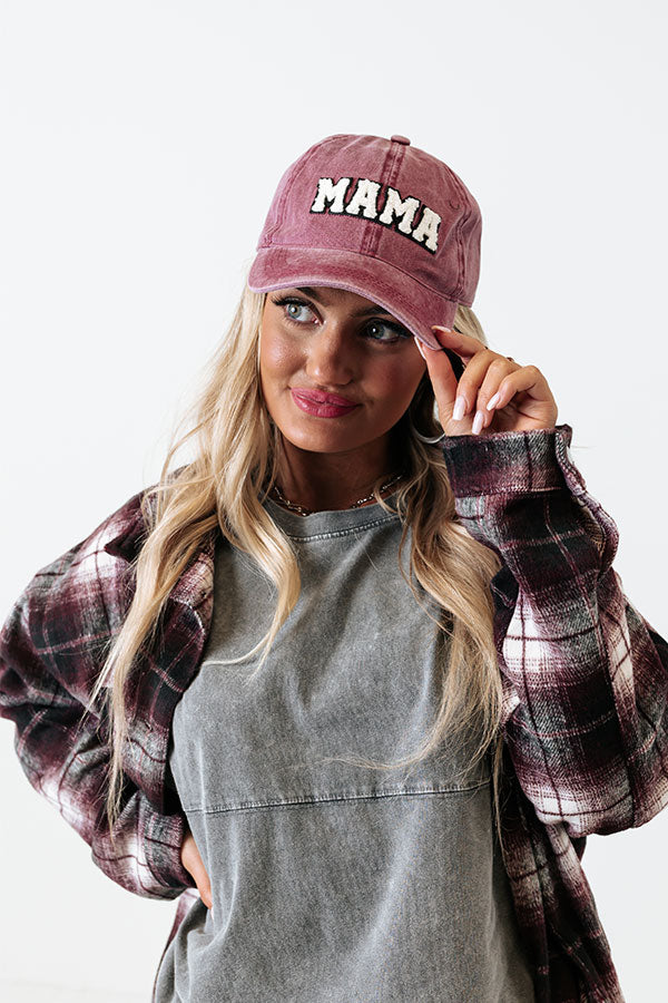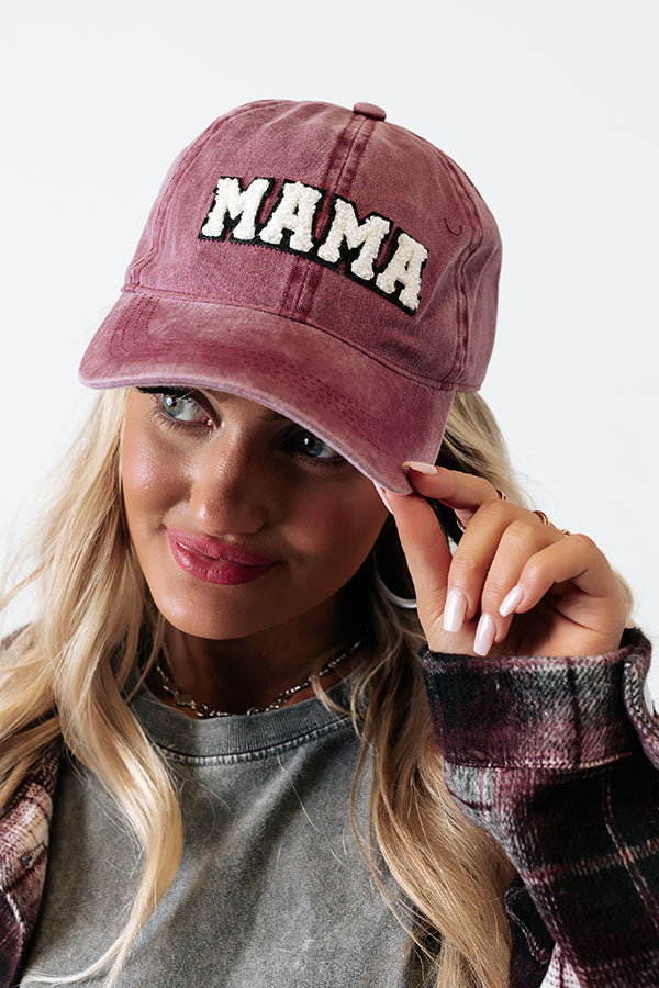 Make a statement with this adorable vineyard grape colored baseball cap featuring white sherpa letters that spell our MAMA, and adjustable back, and a rounded bill!