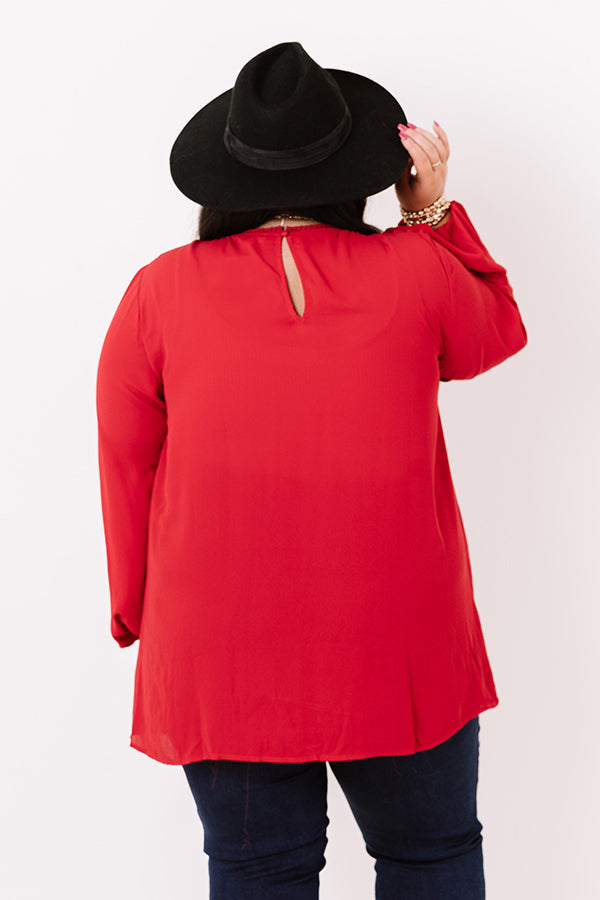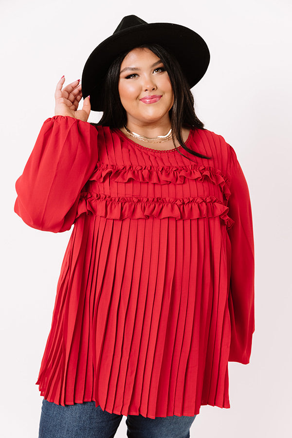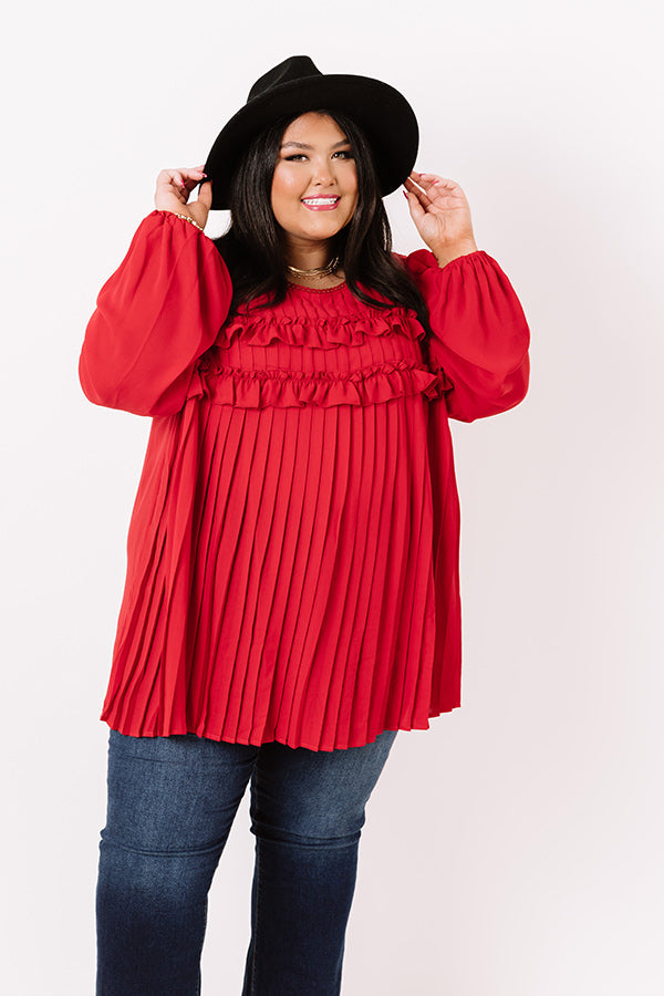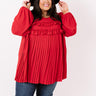 Plus Size - Channel your inner socialite with this stunning wine colored top featuring lightweight flowy material with pleated detailing, a high rounded neckline, ruffled accent seams across the bodice, long bubble sleeves with elastic band cuffs, a keyhole accented upper back with a button closure, and a relaxed silhouette that falls into a straight hemline! Measurements
