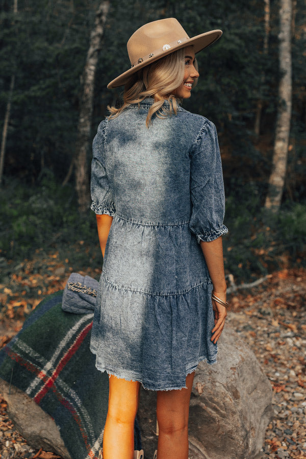 - A relaxed silhouette that ends in a mid-thigh length frayed hemline
