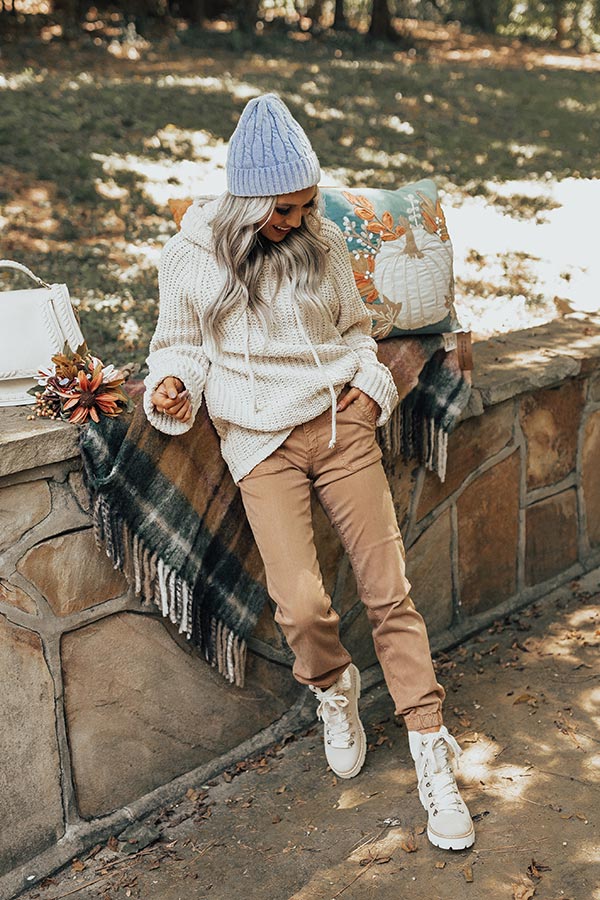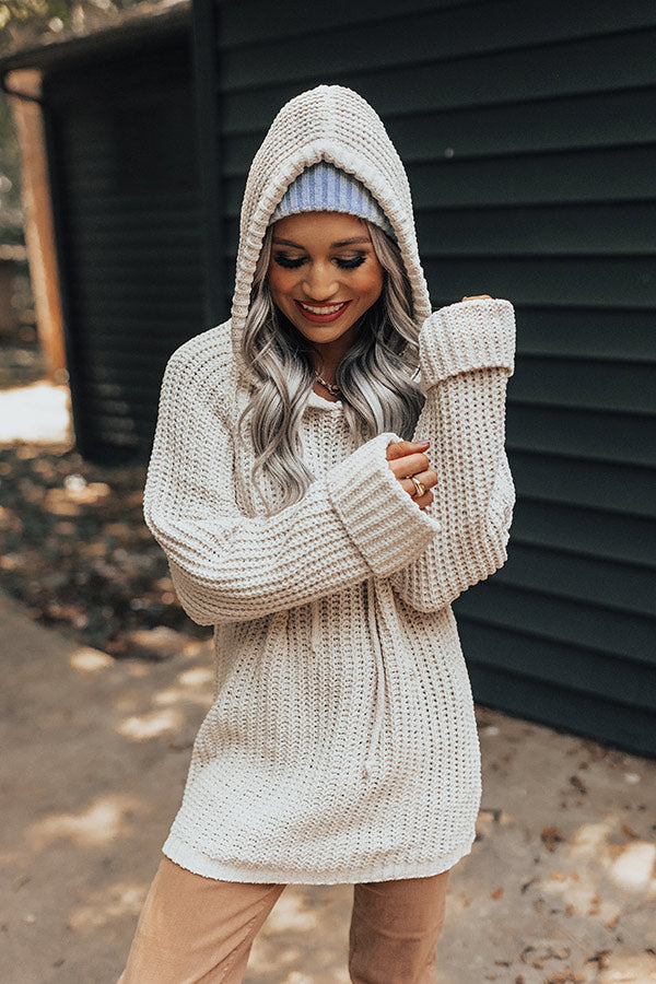 Slay all day in our casual ivory colored 'Maple Spice' hoodie featuring thick and soft knit material, a high neckline with a drawstring hooded back, long loose sleeves with rolled cuffs, and a slouched silhouette that falls into a straight hemline!