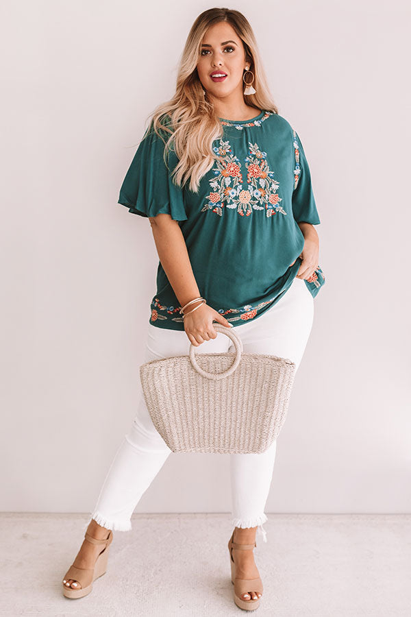 Today's forecast calls for sunshine, a cute outfit, and lots of margaritas! The "Margarita Calling Embroidered Shift Top" has short flutter sleeves, a keyhole accented upper back with button closure, and a relaxed rayon bodice that is decorated with colorful floral embroidery. Complete your look with your favorite denim and a few fun accessories, for a great wear-anywhere look that's perfect for spring, summer, and fall!