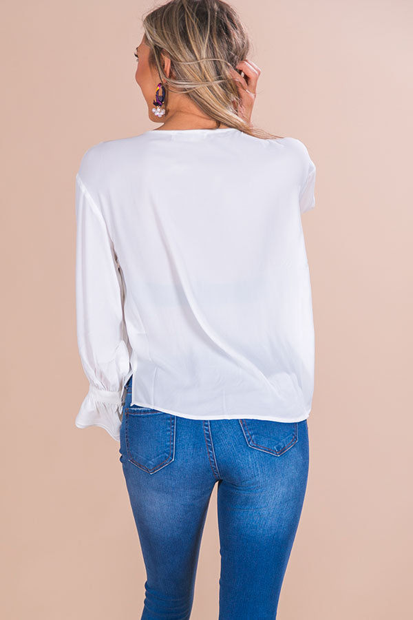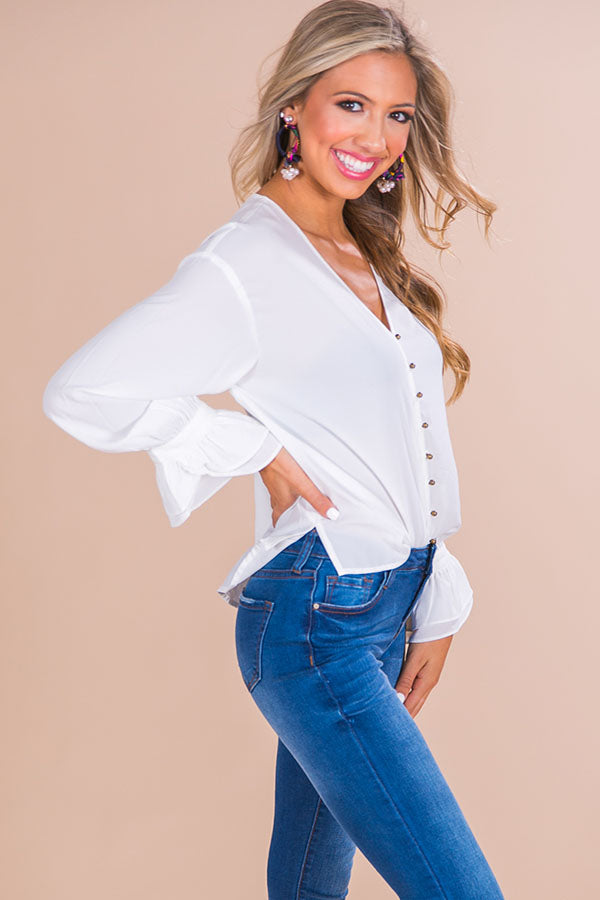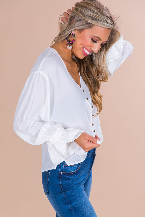 - Long sleeves with ultra feminine dual ruffled cuffs