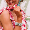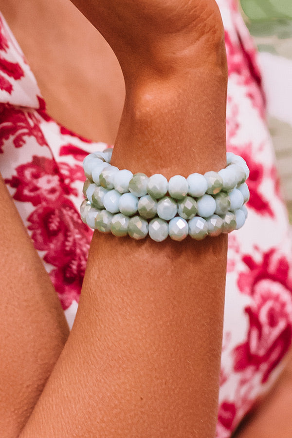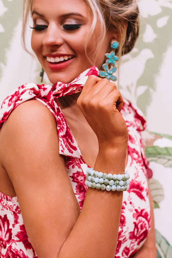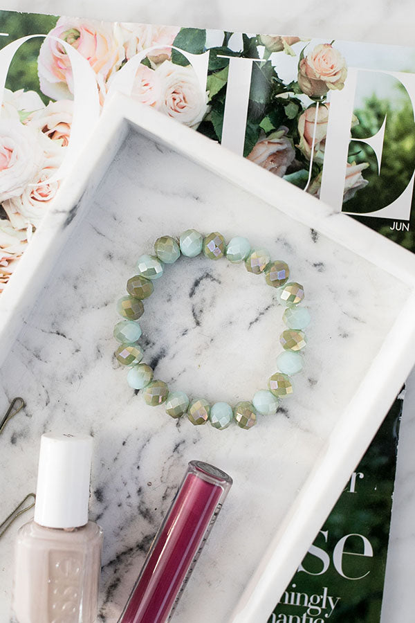 Get dolled up for "margarita time" with your best girls by accessorizing with this charming bracelet featuring an elastic fit with round pear colored beads making it perfect for stacking with other statement bracelets!