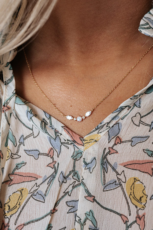 Complete your look with our beautiful 'Mark Of True Love' necklace featuring a dainty gold chain with two rhinestones and one opal charm!