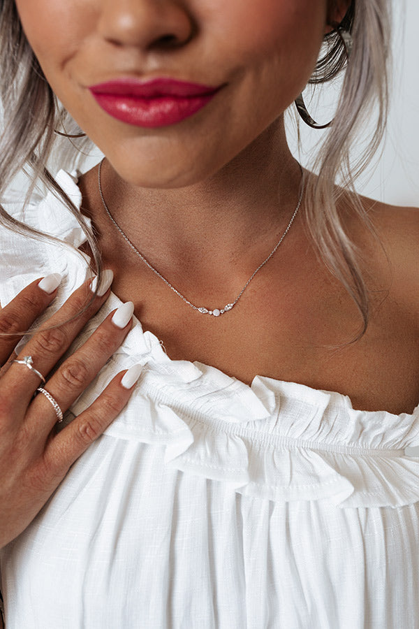 Complete your look with our beautiful 'Mark Of True Love' necklace featuring a dainty silver chain with two rhinestones and one opal charm!