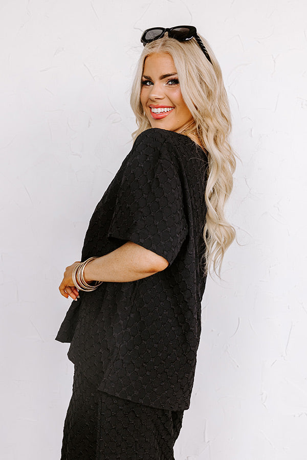 - Elevate your everyday style with this lattice-textured top, blending sophistication with modern flair. Effortlessly chic, this versatile piece transitions seamlessly from day to night.