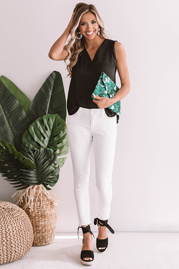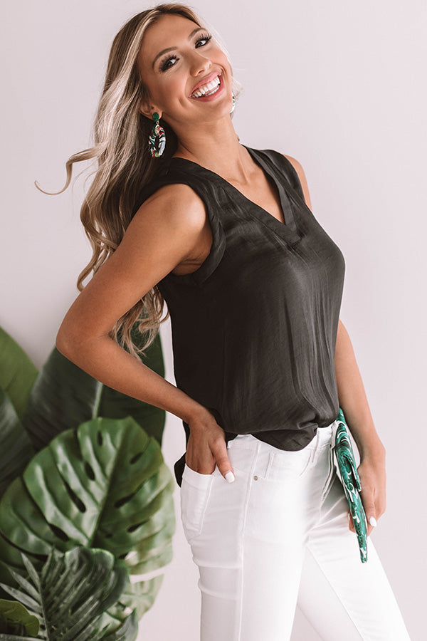 Stylishly simple & ultra versatile, we can't stop crushing on this chic sleeveless v-neck top! The "Martinis in Manhattan Shift Top" has a v-cut neckline, cuffed sleeve detail & a relaxed polyester bodice.