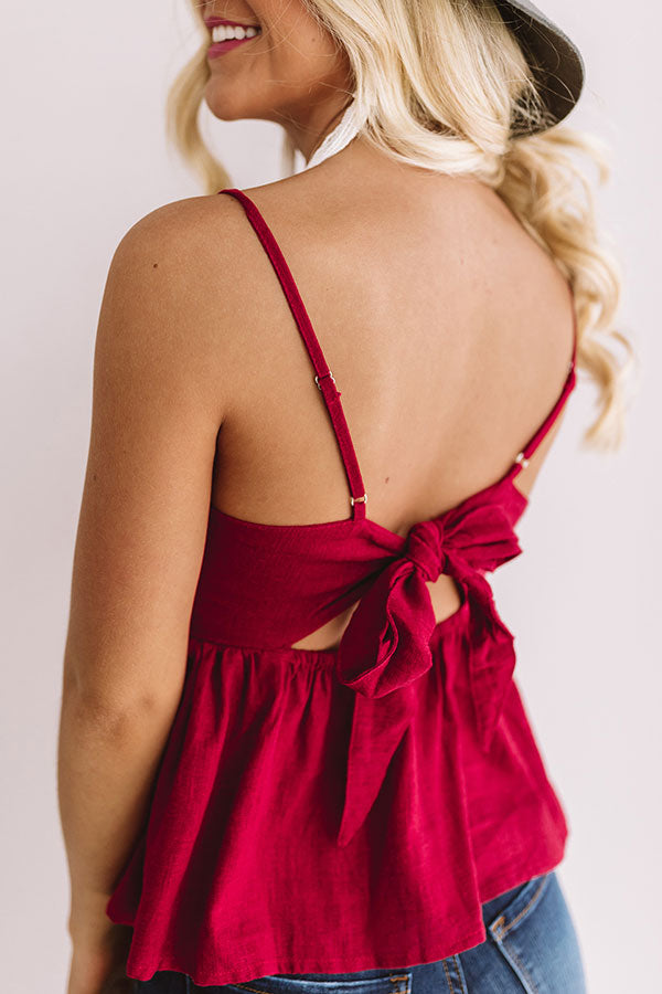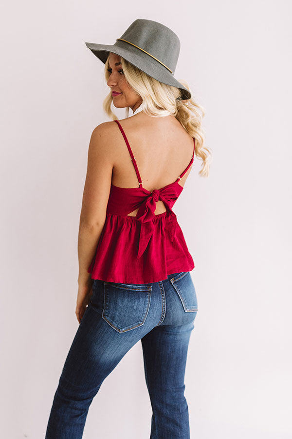 This ravishing wine babydoll tank is meant for margs with its low v-neckline, spaghetti straps, and short peplum bottom! Style this hot piece with a summer straw hat, distressed denim, and a neutral tote for the perfect happy hour or backyard bash look! Measurements