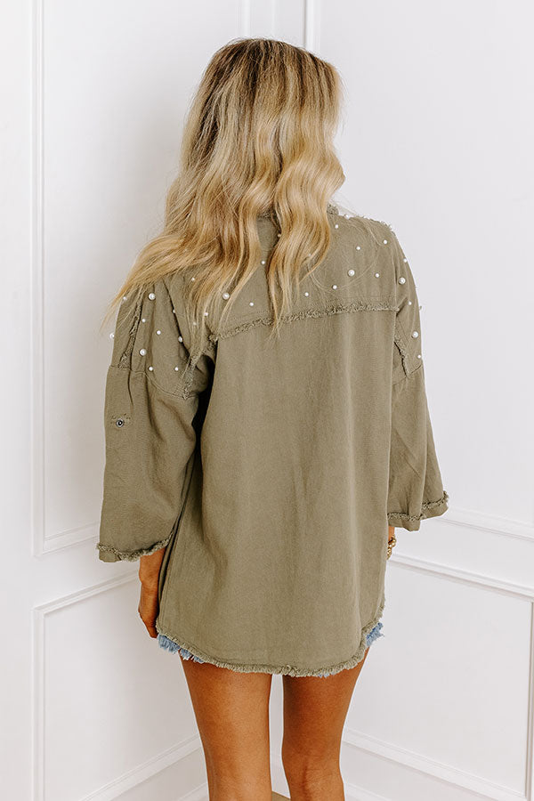 - 3/4 length sleeves with rolled cuffs and frayed detail