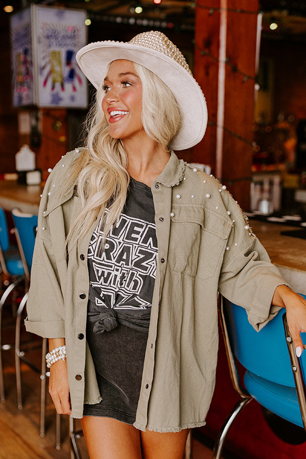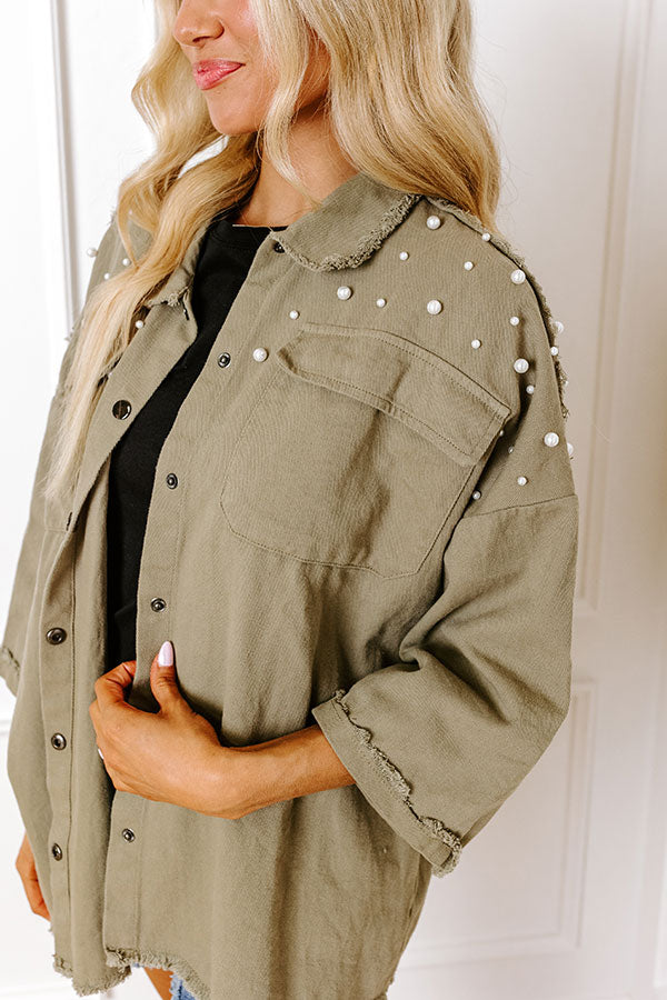 - Unlined non-stretch denim material with frayed detail and faux pearl embellishment