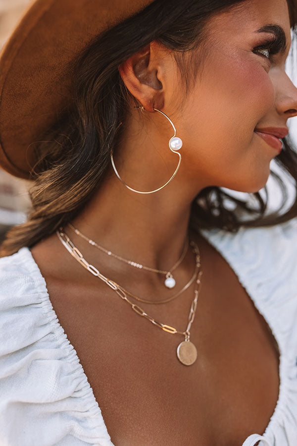 A timeless accessory, our elegant 'Meant To Be Happy' earrings feature large thin gold hoops with a single pearl accent in the front!