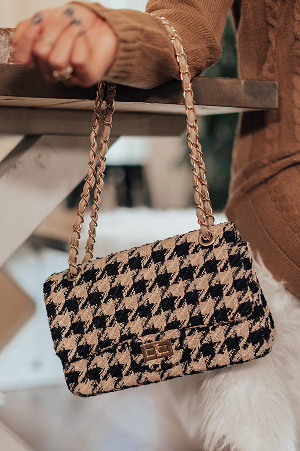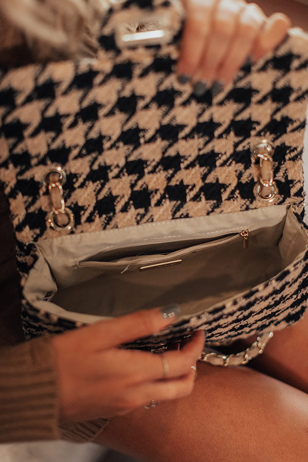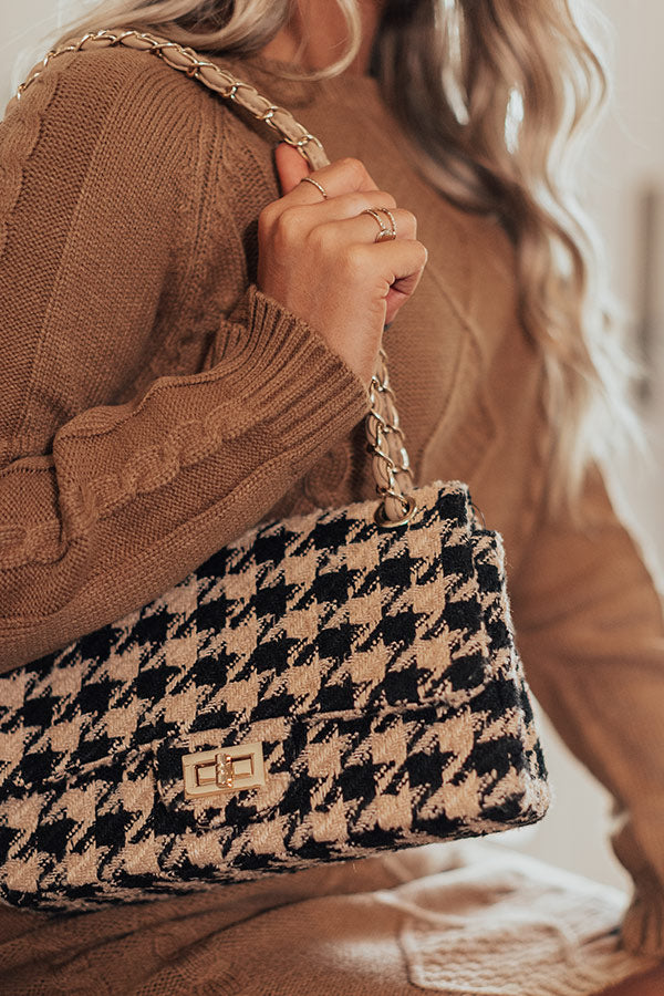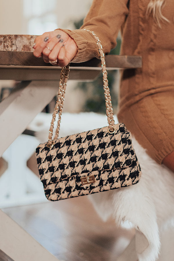 Meant To Be Houndstooth Crossbody In Iced Mocha