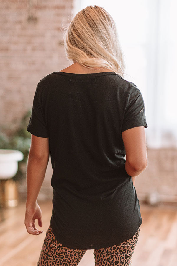 You will be anything but basic in the "Meet Me For Bruch" black shift tee featuring short sleeves, a wide v-neck that an be worn off one shoulder, soft lightweight material, a loose t-shirt fit bodice, and a rounded hemline that can be worn tucked in! We have styled this simple piece with some high waist leopard skinnies, a statement necklace, and a black strappy block heel and crossbody, but you can also pair it with a pair of distressed denim shorts, "The Karlie Perforated Bootie in Black," and our "Florals Forever" hair scarf in black! Measurements