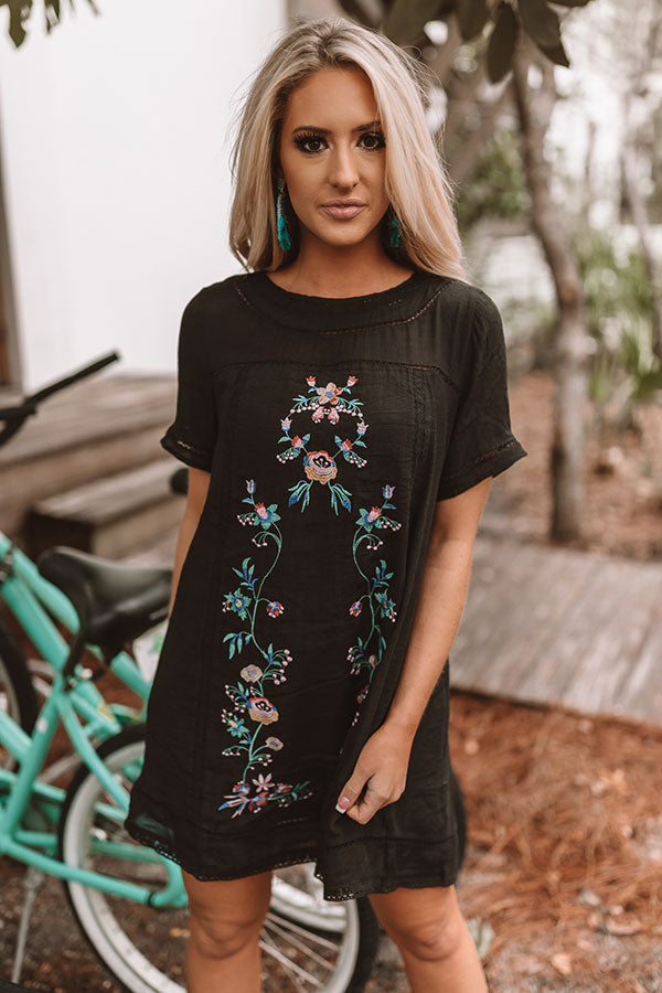 Vacay in style in this chic shift dress! This boho babe has short sleeves, a breezy shift silhouette with gorgeous floral embroidery & ivory crochet pierced details throughout. All you need is a sassy wedge and a paradise destination to pull this look together!