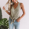 This front tie tank is made of soft ribbed fabric and features side split hems, wide shoulder straps, and a v-cut neckline. With a button down, relaxed fit bodice ending in adjustable front tying details, this tank is perfect on its own and also provides effortless layering! Measurements