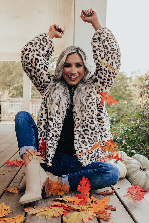 Keep warm in the most fashionable way with our stunning "Meet Me In Times Square Plush Coat" featuring ultra soft faux fur material patterned with a bold black and neutral leopard print, long loose sleeves with fitted cuffs, and a slouched open front silhouette that falls into a straight hemline! Measurements