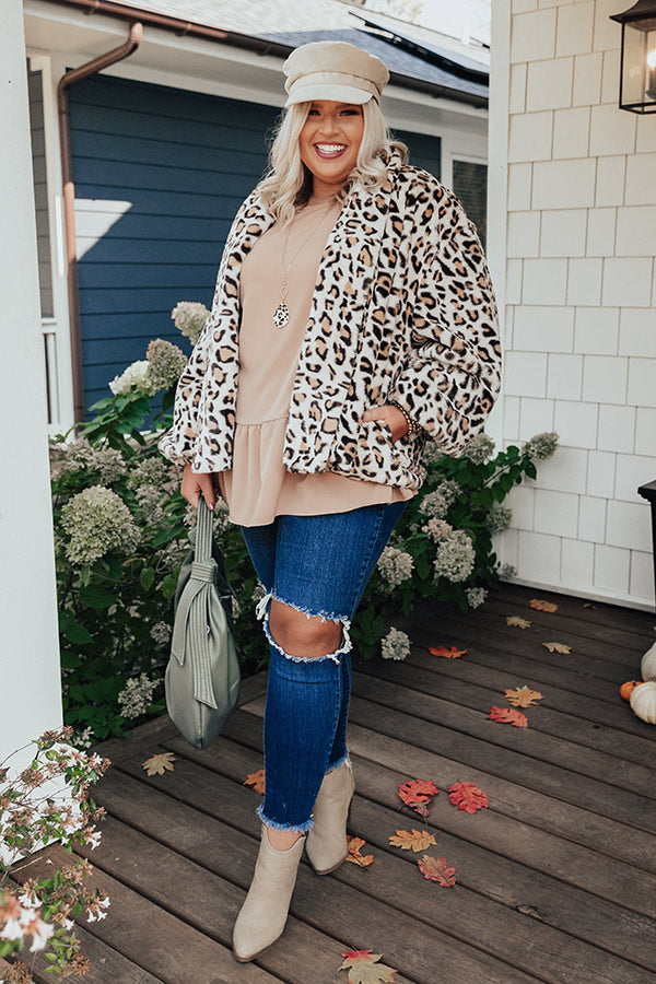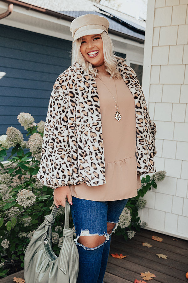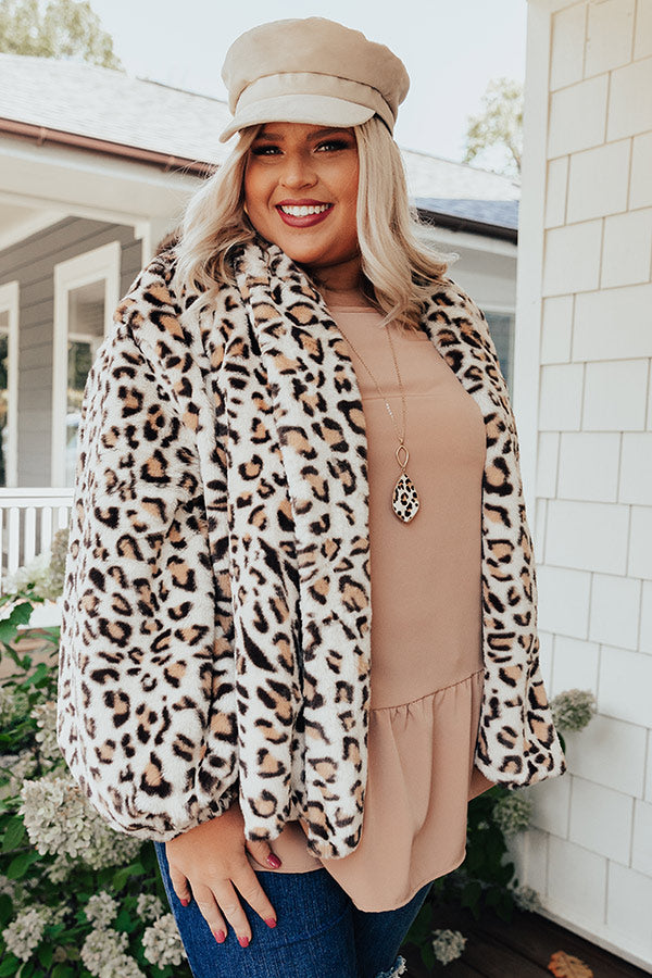 Plus Size - Keep warm in the most fashionable way with our stunning "Meet Me In Times Square Plush Coat" featuring ultra soft faux fur material patterned with a bold black and neutral leopard print, long loose sleeves with fitted cuffs, and a slouched open front silhouette that falls into a straight hemline! Measurements