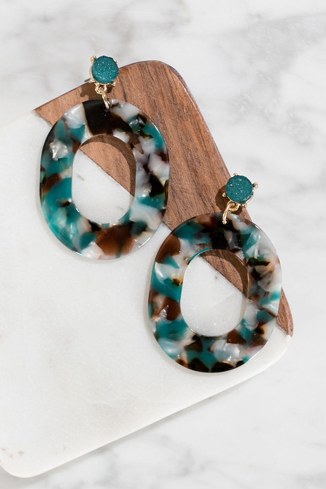 You will undoubtedly be a muse in these statement earrings featuring circle studs and wide teal marble hoops!