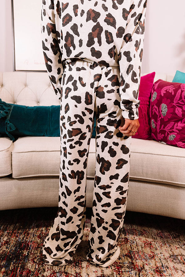 You won't find a better piece to enjoy a "mellow morning" in than these darling pants featuring soft lightweight material patterned with a bold black and brown leopard print, a wide elastic waistline with a tie belt, and a relaxed silhouette that falls into straight floor-length hemlines! This comfy piece styles perfectly with our matching "Mellow Morning Leopard Sweatshirt," a headband, and some fuzzy slippers for the ultimate two-piece lounge look!
