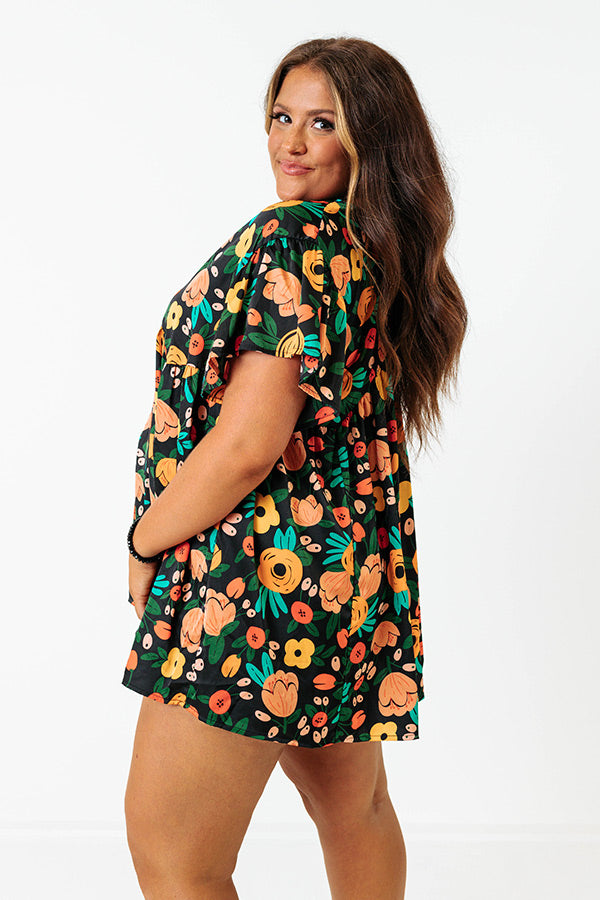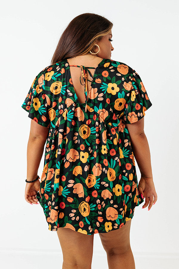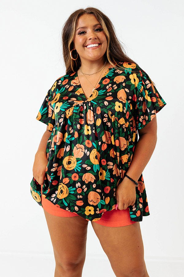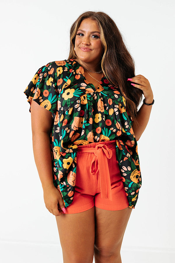Be bold in our eye-catching black plus size 'Memories On Repeat' top featuring lightweight material patterned with a vibrant summer floral print, a v-cut neckline and upper back with a tie closure, loose short sleeves, and a relaxed silhouette that falls into a straight hemline!