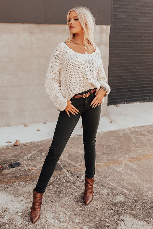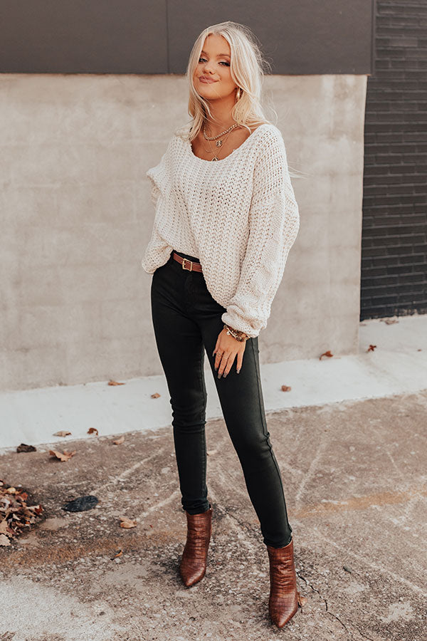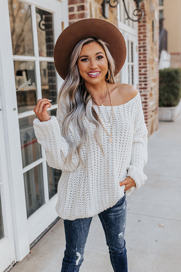 Showcase your inner fall fashionista with our adorable ivory colored 'Merlot Meeting' sweater featuring soft lightweight loose knit material, a scooped neckline, long loose sleeves, and a slouched silhouette that falls into a straight hemline!
