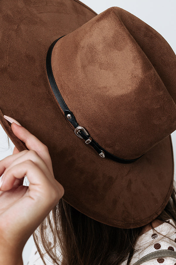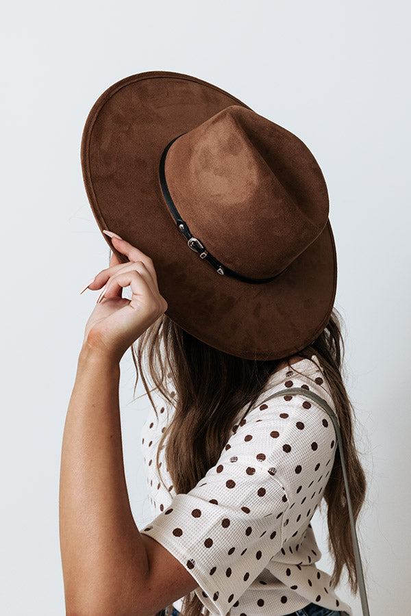 Sip some Merlot on the patio looking fabulous in this gorgeous chocolate brown fedora featuring lightweight faux suede material, a 4-inch brim, and a skinny black buckle accent band!