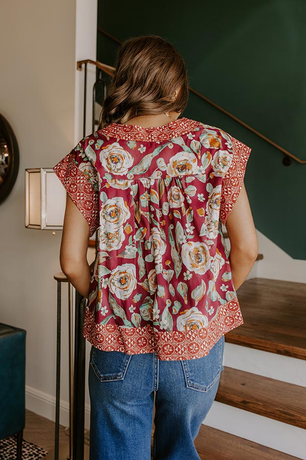 Merlot Whisper Floral Top in Wine