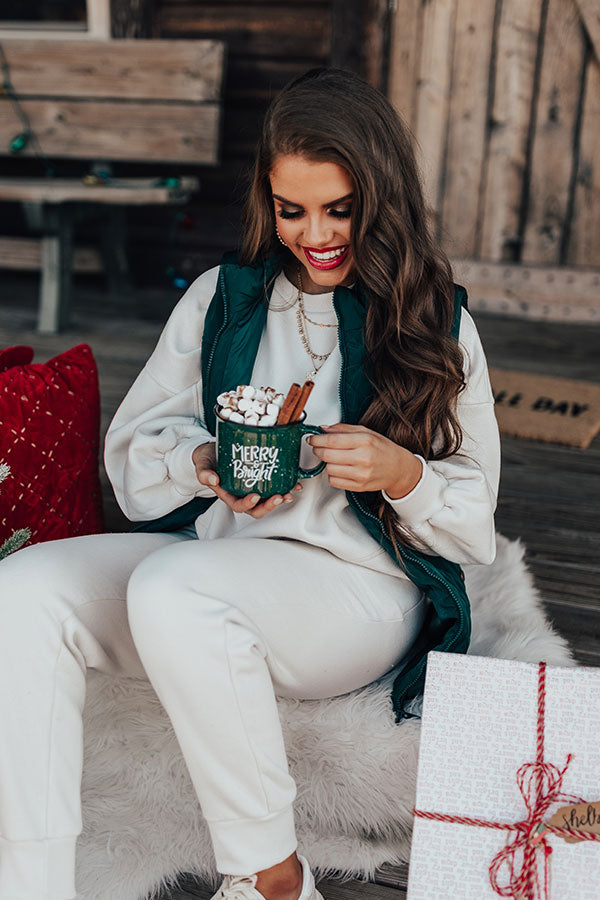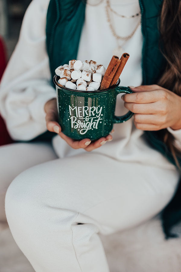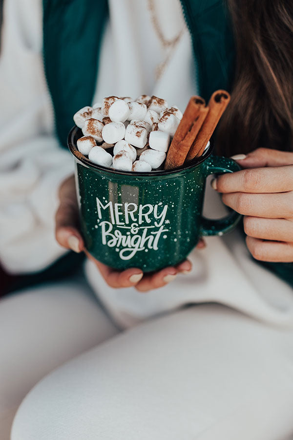 Sip in style with our adorable dark green 'Merry And Bright' mug featuring durable ceramic material with white accent lettering and a single handle! Plus, this cutie is dishwasher and microwave safe!