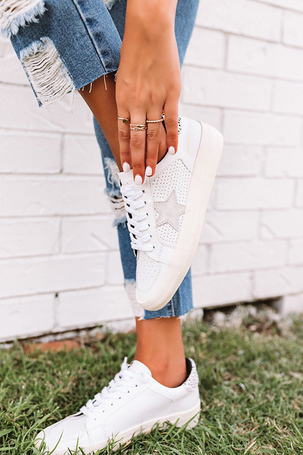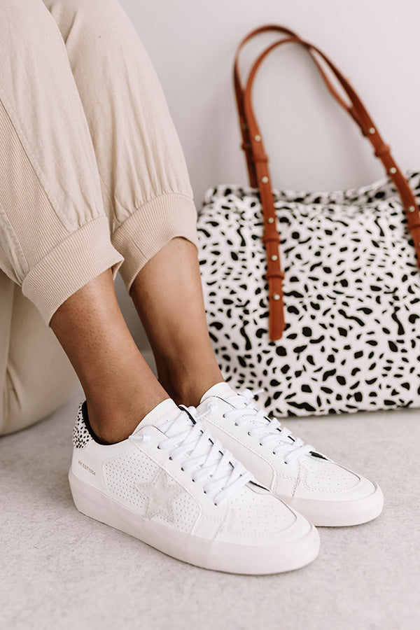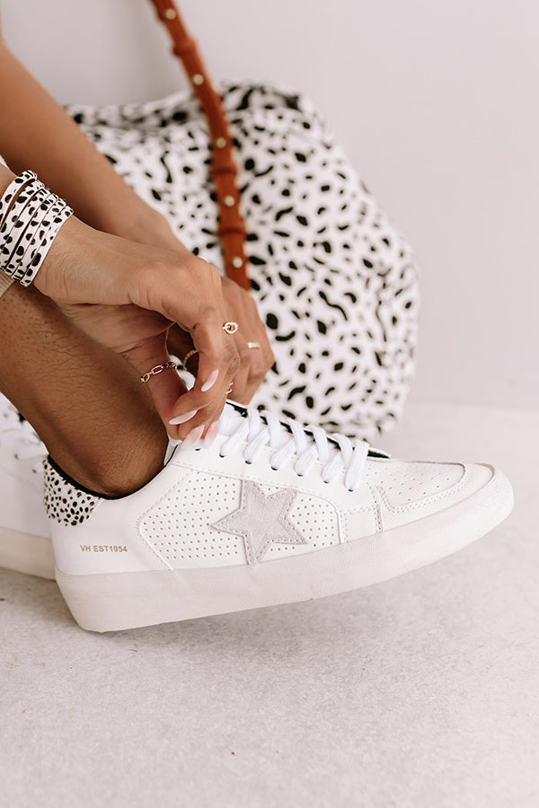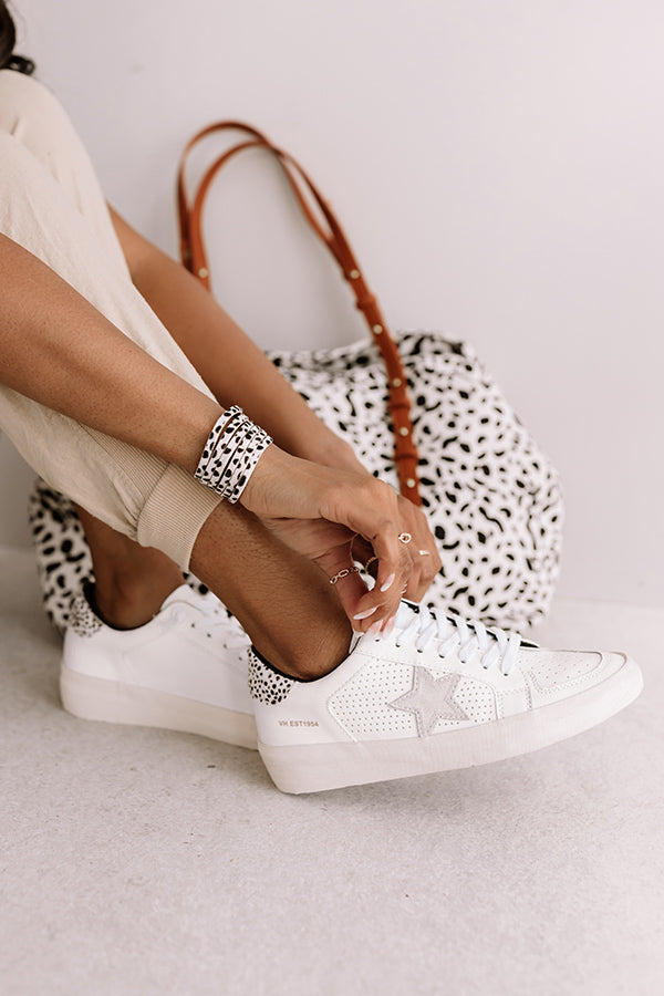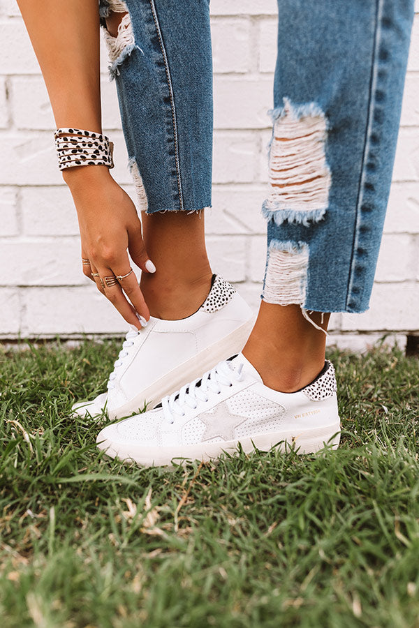 Strut around in style all year long with our trendy "Mesh" sneaker featuring white material with perforated detailing, neutral accents stars on the sides and an accent black spotted print on the heels, rounded closed toes, flat soles, and a lightweight slip-on silhouette!