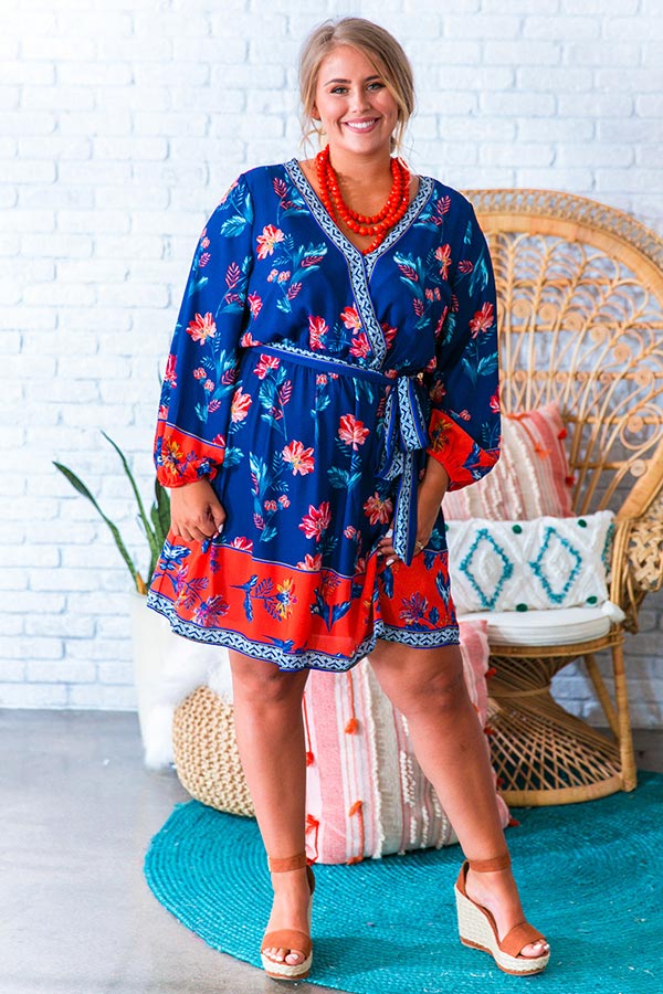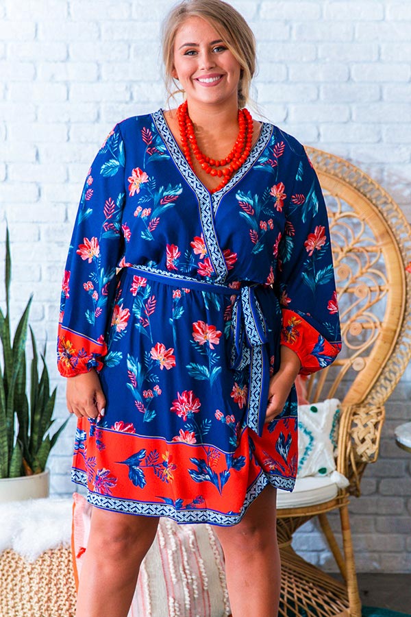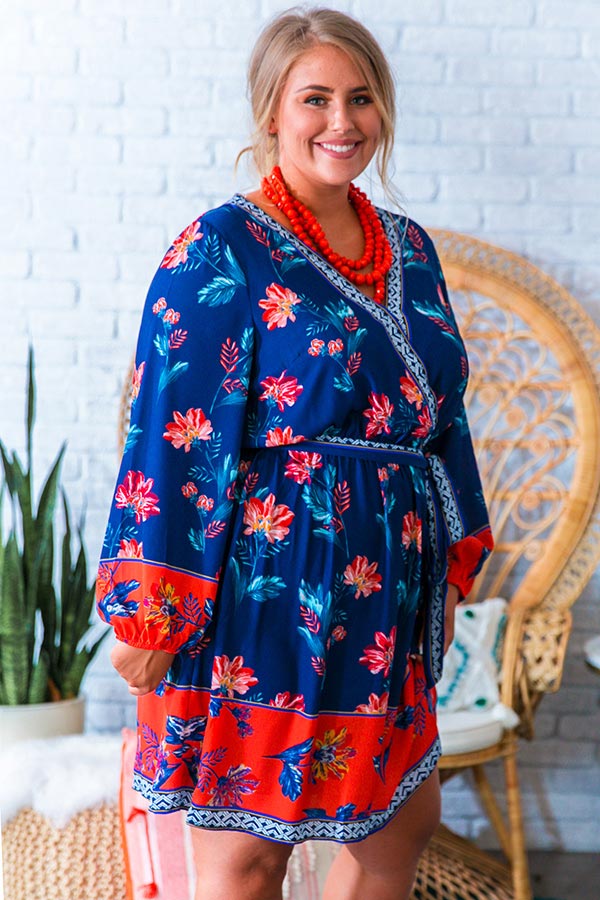 No matter your plans, keep your look chic, with the "Metropolitan Chic Floral Dress!" This fabulous floral dress has long sleeves, a surplice bodice (with modesty snap closure), & a cinched elastic waist (with a sash tie belt) that falls into a breezy polyester skirt. Transition this look from Summer to Fall with just a simple shoe change!