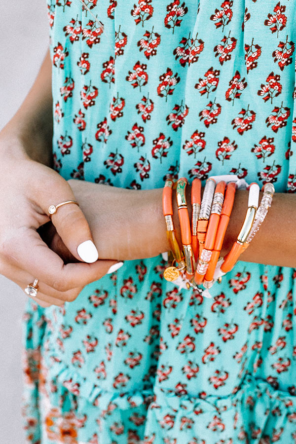 The pretty 'Mezcal Margs' is a set of three bracelets featuring orange and gold stretchy bands! Due to manufacturing there may be variations in the bracelets, no two are alike.