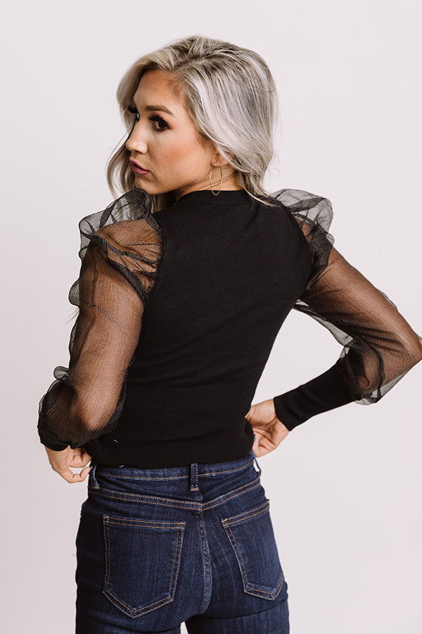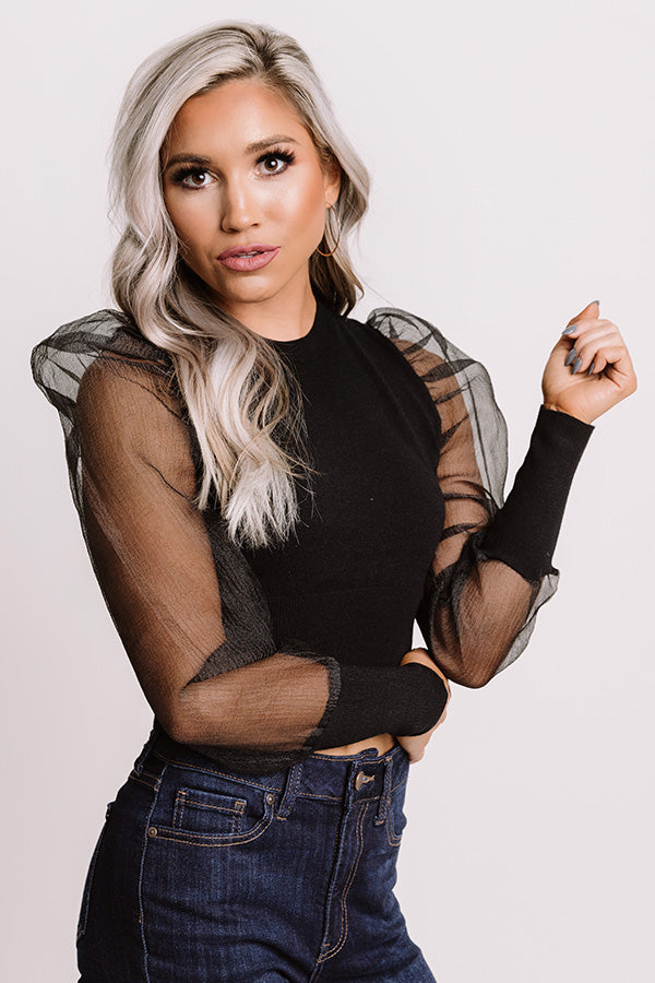 Stay looking fabulous late into the night with our chic black "Midnight Hour Top" featuring a solid lightweight bodice with a high rounded neckline, long loose semi-sheer sleeves with puff shoulders and solid forearm cuffs, and a flattering silhouette that falls into a straight hemline!