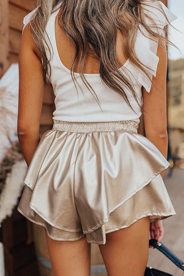Midnight Kiss High Waist Faux Leather Shorts In Gold