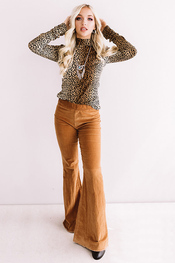 You are sure to feel like the ultimate fashionista when you wear the "Milan Moment" top featuring a bold ombre leopard print, lightweight subtly ribbed material, long fitted sleeves, a high turtle neckline, and a flattering relaxed bodice that falls into a straight hemline! We have styled this flirty transitional piece with some matching corduroy flares, turquoise statement jewelry, and a black bootie, but you can also wear it with some distressed ankle skinnies, "The Liz Faux Suede Boot in Copper," a black crossbody, and our "Name Dropper Hat in Black!" Measurements