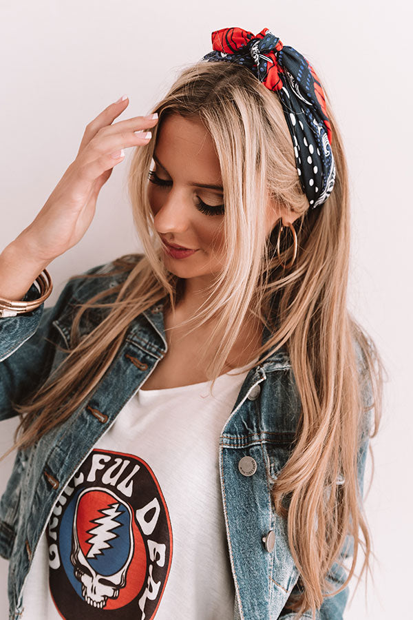 You will love accessorizing with our "Milan Moment" scarf featuring a variety of red, white, and navy patterns and a silky texture! PLUS, it can be worn a variety of ways like as a headband, around your purse handle, tied around your neck, or draped through your belt loop!