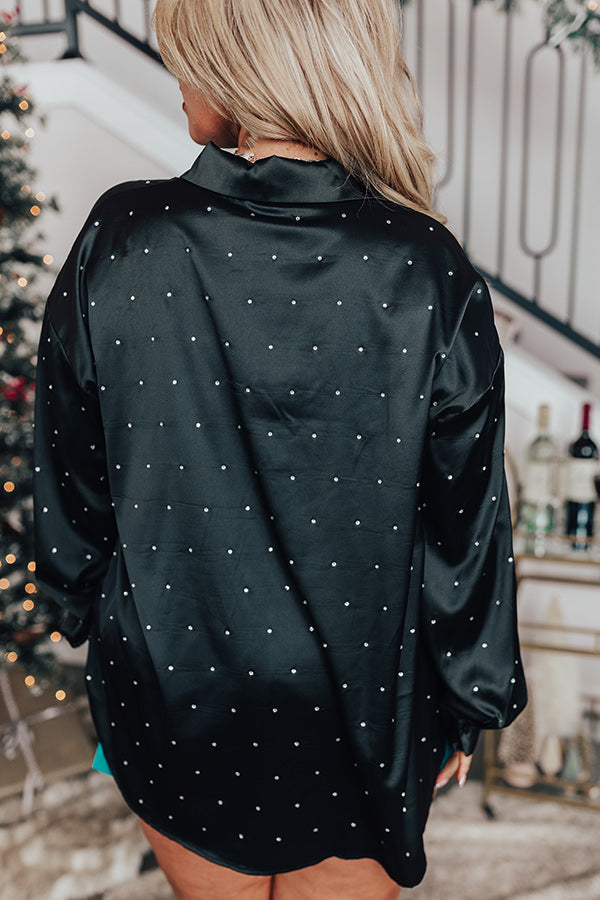 - Shimmering and chic, this gorgeous button up is a perfect touch of glam!