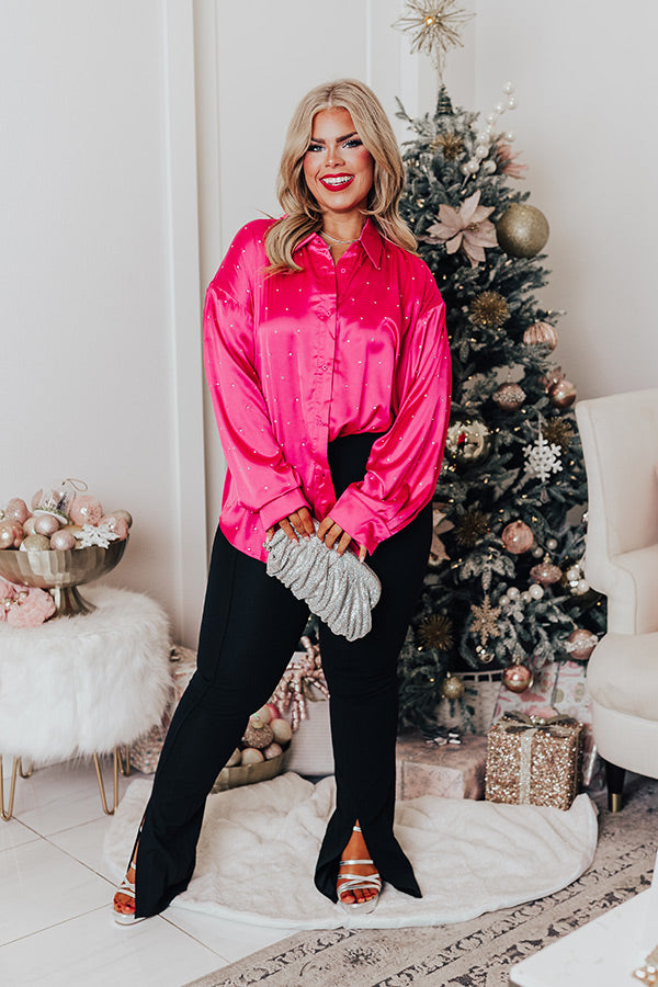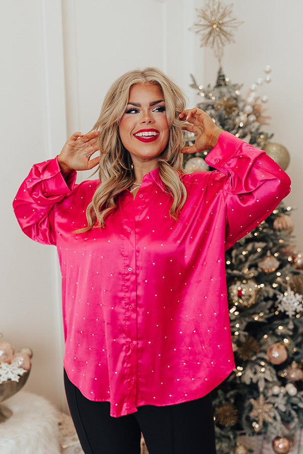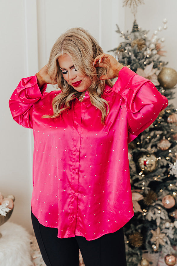 Milan Muse Rhinestone Satin Top In Hot Pink Curves