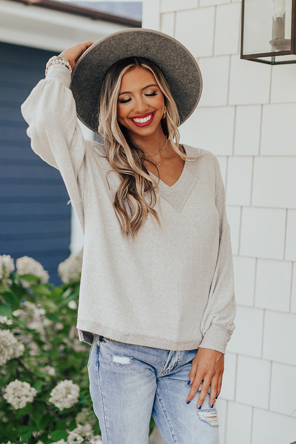 Keep your OOTD simple but significant in our grey casual cute "Miles To Go Shift Top" featuring lightweight flowy material, a v-cut neckline, long bubble sleeves with fitted cuffs, and a slouched silhouette that ends in a straight hemline! Measurements