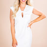 Mimosas or Red Wine, whatever you're drinking in this dress, you'll be looking ultra fine! This sophisticated sweetie has a bow accented keyhole neckline & a classy tea length silhouette that is perfect for any occasion. Style with a nude heel for a chic look that's perfect for brunch, the boardroom & beyond!