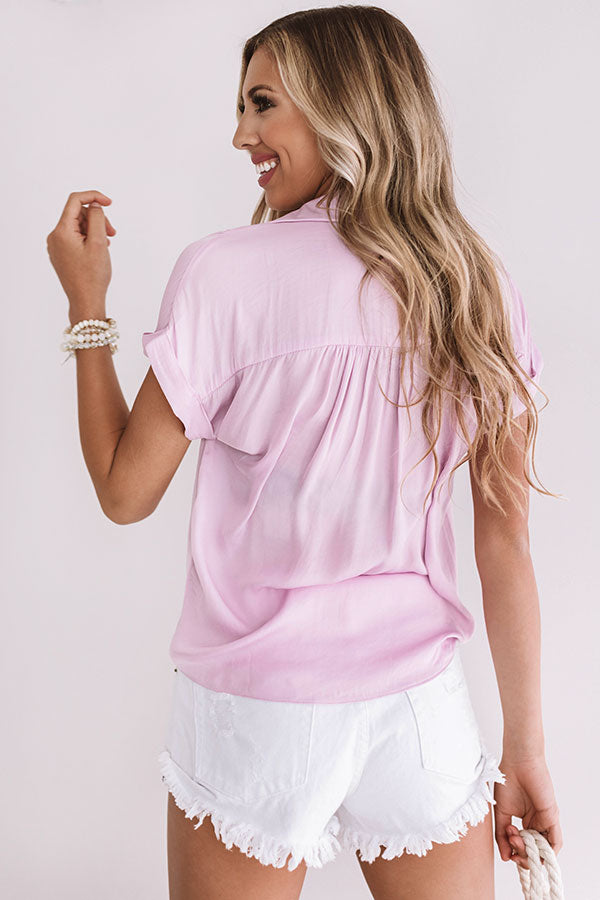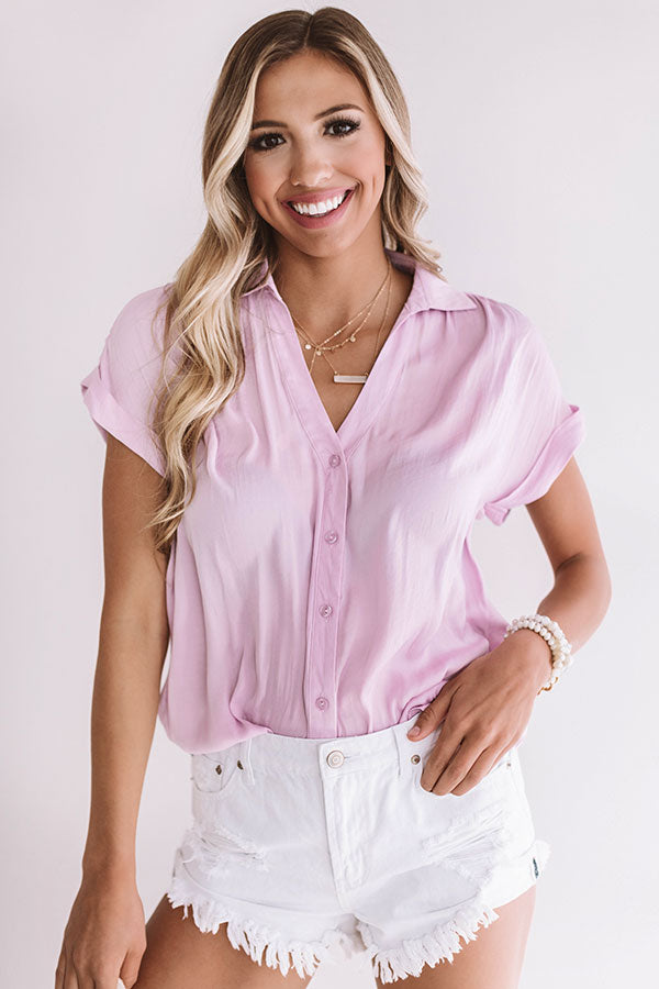 This light orchid shift top will have you asking "mimosa please" with its button down bodice, collared v-neck, short cuffed sleeves, a rounded hemline, and a loose lightweight fit with subtle pleated detailing in the back! You can style this piece for vacation with some distressed white shorts, a tote, and a neutral wedge, for the office with some neutral trousers, statement earrings, and heels, or for some weekend activities with distressed skinnies, a hair scarf, and sandals! Measurements