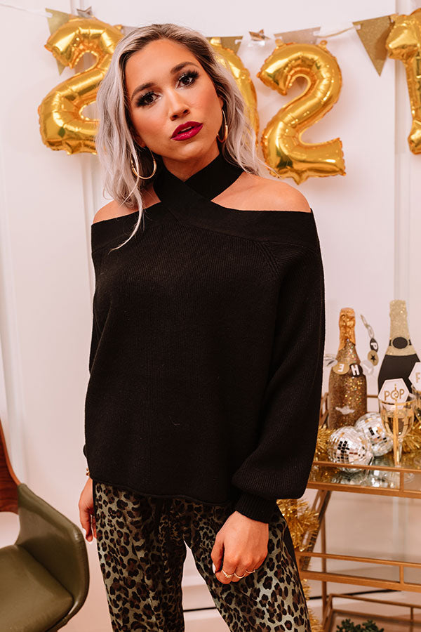 Don't keep your head in the clouds and add our charming black 'Mind Over Manhattan Sweater' to your cart! It features soft lightweight tight knit material, long bishop sleeves with fitted cuffs and cutout shoulder accents, a high crossed wide strap neckline, and a slouched silhouette that falls into a straight hemline! Measurements