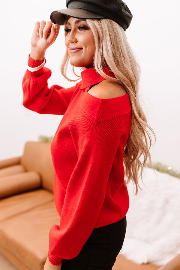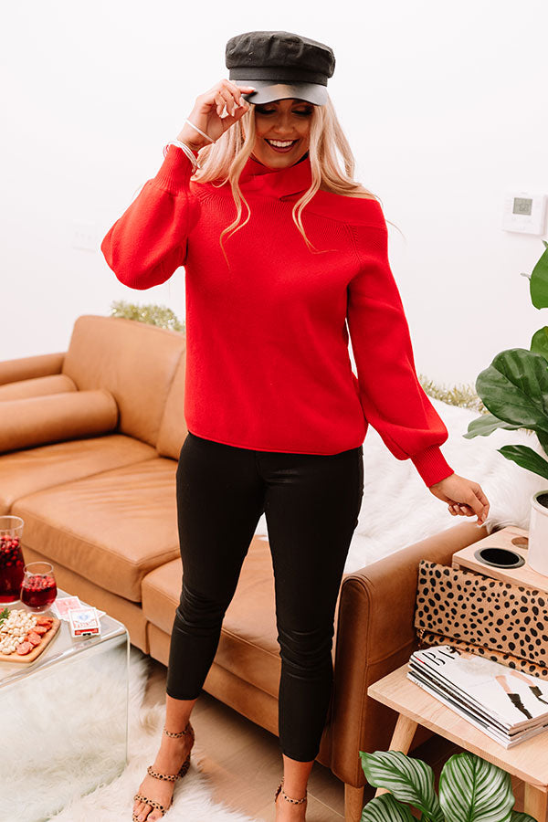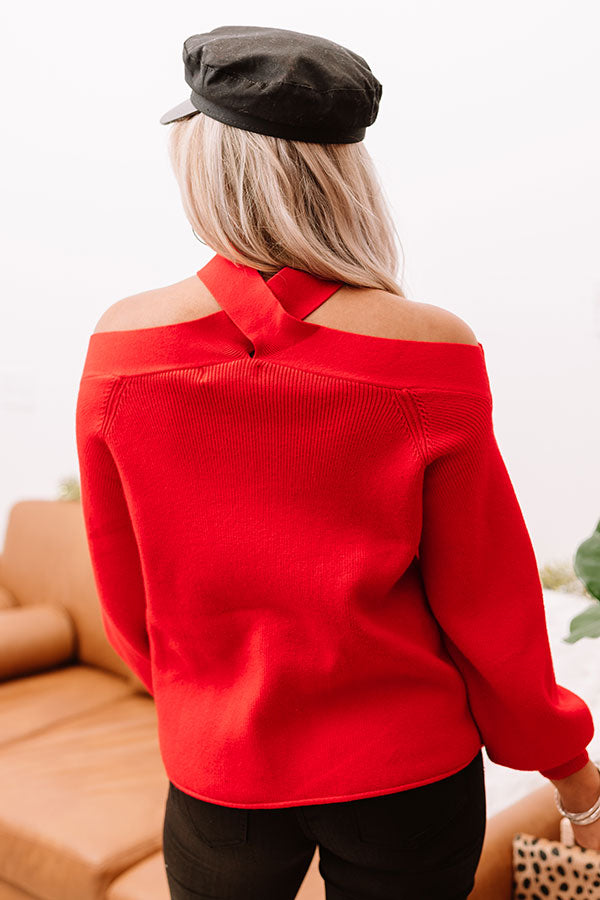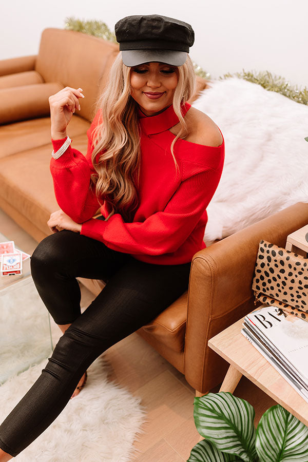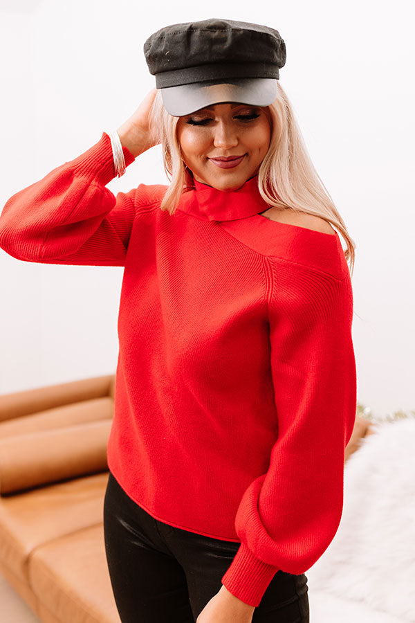 Don't keep your head in the clouds and add our charming red 'Mind Over Manhattan Sweater' to your cart! It features soft lightweight tight knit material, long bishop sleeves with fitted cuffs and cutout shoulder accents, a high crossed wide strap neckline, and a slouched silhouette that falls into a straight hemline!