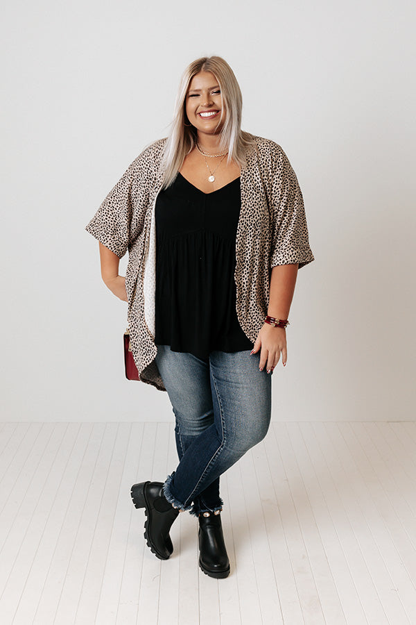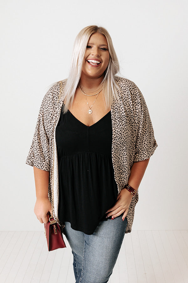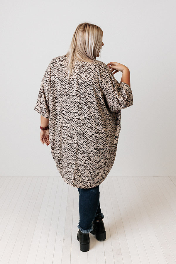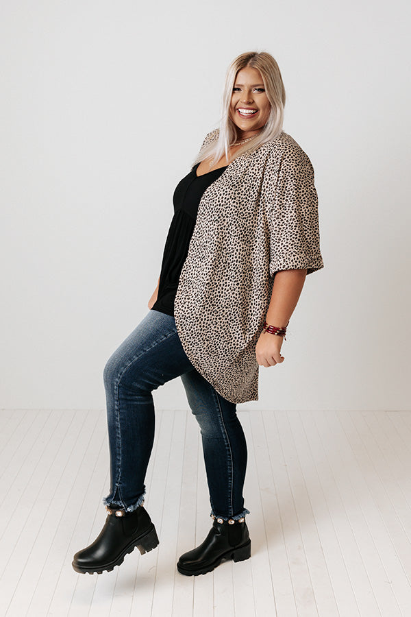 Strike a pose in our adorable plus size 'Mindful Matter' cardigan featuring lightweight material patterned with a small black and brown leopard print, loose half sleeves, and a draped open-front silhouette that falls into a rounded mid-thigh length back hemline!